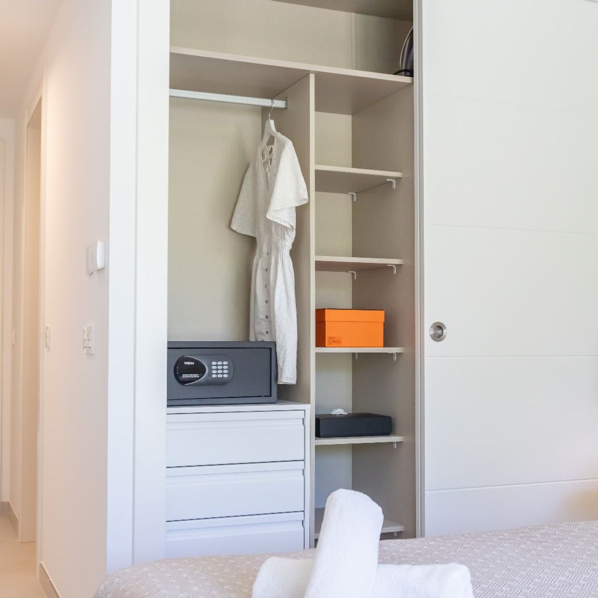 Apartament Estrella del Mar – komfort i styl w sercu Elvirii Zapraszamy do wyjątkowego apartamentu położonego w prestiżowej inwestycji Estrella del Mar, w jednej z najbardziej pożądanych lokalizacji na Costa del Sol – Marbella, w spokojnej i zielonej dzielnicy Elviria (wschodnia część miasta). To nowoczesny, świeżo wykończony apartament, zaprojektowany z myślą o komforcie zarówno podczas krótkich, jak i dłuższych pobytów. Wnętrze apartamentu Apartament oferuje: 2 komfortowe sypialnie 2 eleganckie łazienki przestronny salon z częścią wypoczynkową w pełni wyposażoną, nowoczesną kuchnię prywatny taras idealny do relaksu Wnętrze jest jasne, funkcjonalne i urządzone w wysokim standardzie. Apartament wyposażony jest we wszystkie niezbędne udogodnienia, zapewniające wygodę i niezależność podczas pobytu. Lokalizacja Jednym z największych atutów nieruchomości jest jej doskonałe położenie: zaledwie 250 metrów od piaszczystej plaży w pobliżu restauracji, sklepów i pól golfowych szybki dojazd do centrum Marbelli Elviria to spokojna, ekskluzywna dzielnica, ceniona za bezpieczeństwo, zieleń i bliskość natury. Udogodnienia w kompleksie Goście mają dostęp do wysokiej klasy części wspólnych: basen osiedlowy nowoczesna siłownia przestrzeń coworkingowa idealna do pracy zdalnej garaż podziemny Dla kogo? Apartament doskonale sprawdzi się: dla rodzin dla osób pracujących zdalnie